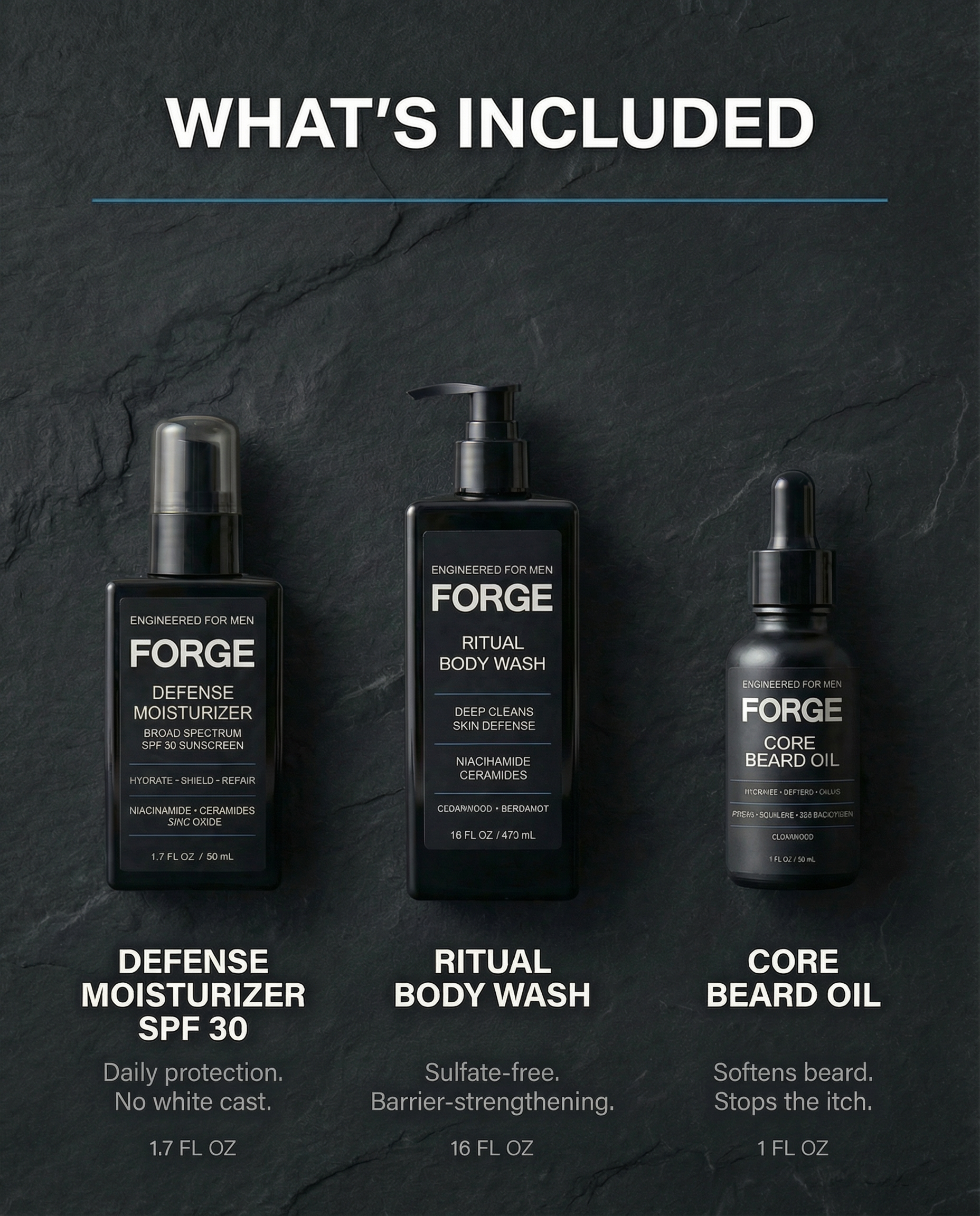 No. Most body washes strip your skin with harsh sulfates. Ours uses sulfate-free surfactants that clean without wrecking your skin barrier. Niacinamide and ceramides keep your skin hydrated long after you towel off.